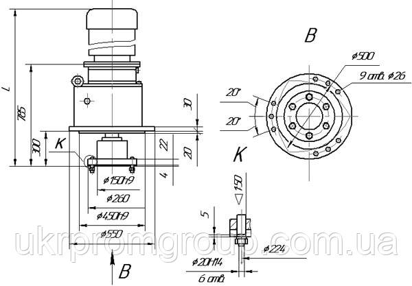 Габаритні і приєднувальні розміри мотор-редуктора МР2 315